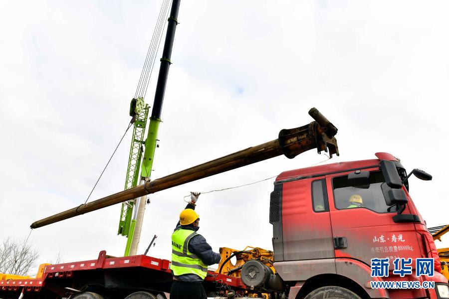 1月20日,救援人员在吊运10号钻孔钻杆。
