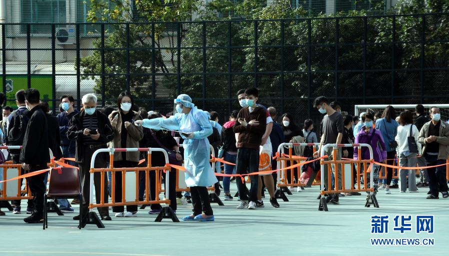 1月21日,香港市民排队等候做核酸检测。新华社记者 卢炳辉 摄