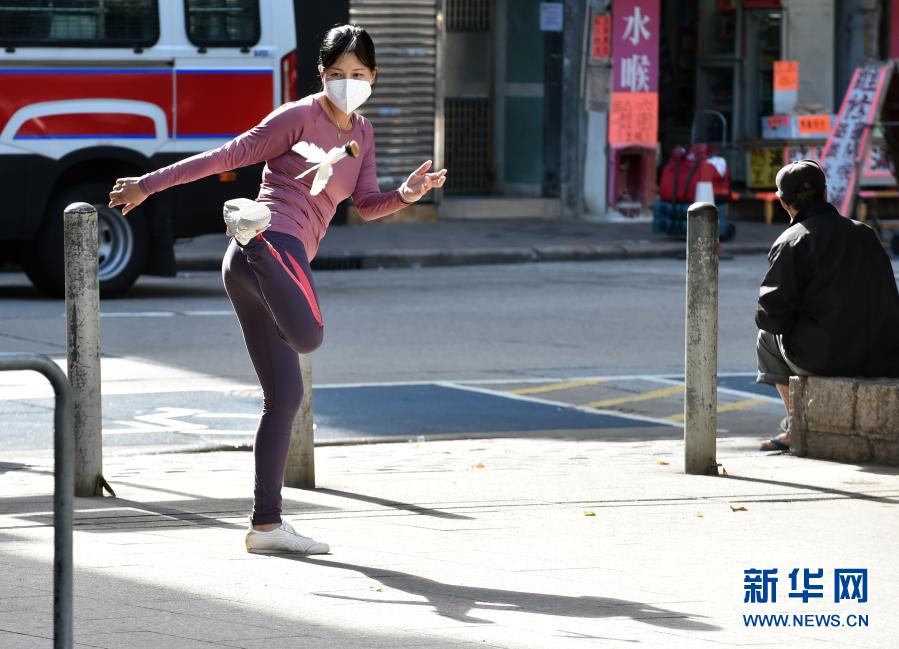 1月21日,戴着口罩的香港市民在运动。新华社记者 卢炳辉 摄
