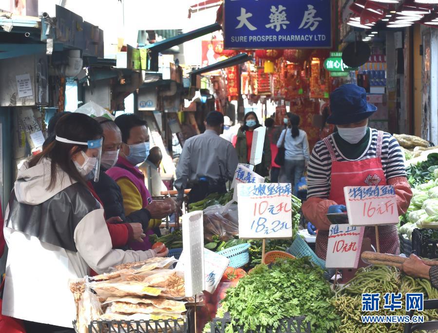1月21日,戴着口罩的香港市民购买蔬菜。新华社记者 卢炳辉 摄