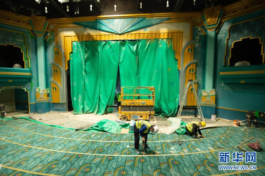 1月28日,工人们在北京环球影城主题公园项目工地的一处剧场进行施工。新华社记者 陈钟昊 摄
