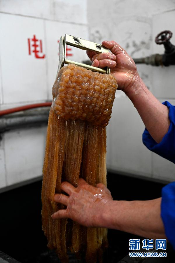 1月29日,在柳州机务段检修车间,卢刚民取出在油桶里浸泡了24小时的毛线。新华社发(黎寒池 摄)