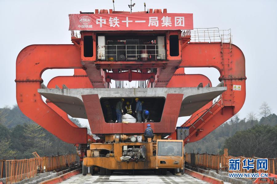 1月31日拍摄的常益长高铁六标箱梁架设现场。新华社记者 赵众志 摄