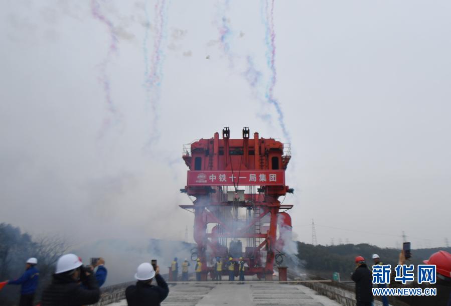 1月31日,常益长高铁六标箱梁架设顺利完成。新华社记者 赵众志 摄