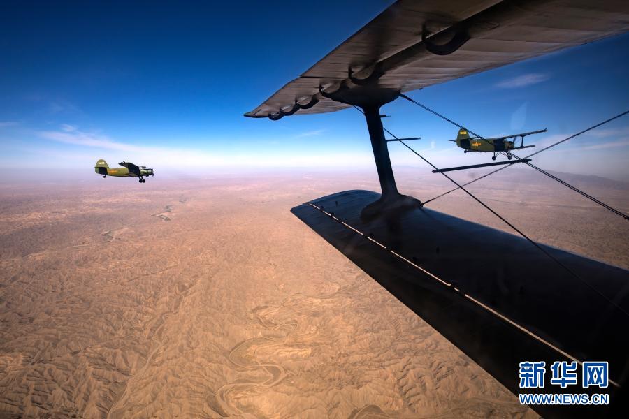 空军某运输搜救团一大队飞播任务分队转场至西北大漠深处,执行2020年度飞播造林任务(2020年6月2日摄)。