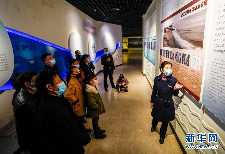 2月21日,游客在白鹤梁水下博物馆的地面陈列馆参观。
