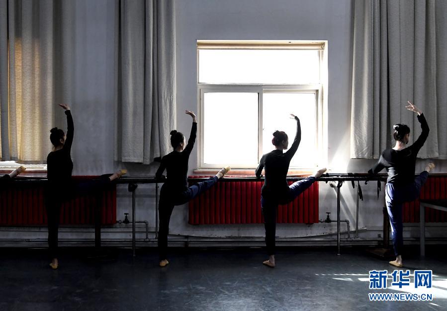 郑州歌舞剧院的演员在排练厅内练功(2月20日摄)。