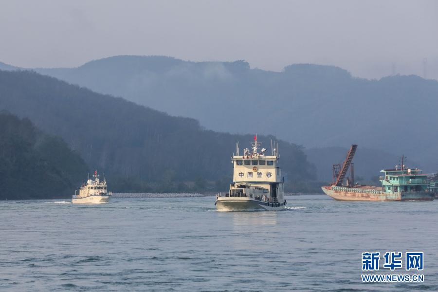 2月23日,第102次中老缅泰湄公河联合巡逻执法编队启航,中方执法艇编队巡航经过澜沧江景哈水域。
