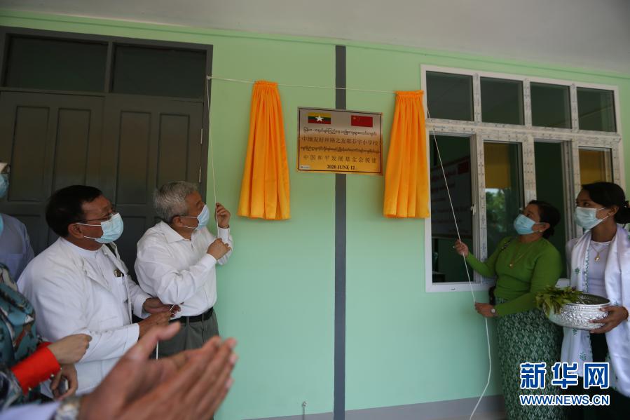 2020年7月16日,中缅双方代表为位于缅甸仰光省的耶芬宇小学揭牌。该学校由中国和平发展基金会援助扩建。新华社发(吴昂 摄)