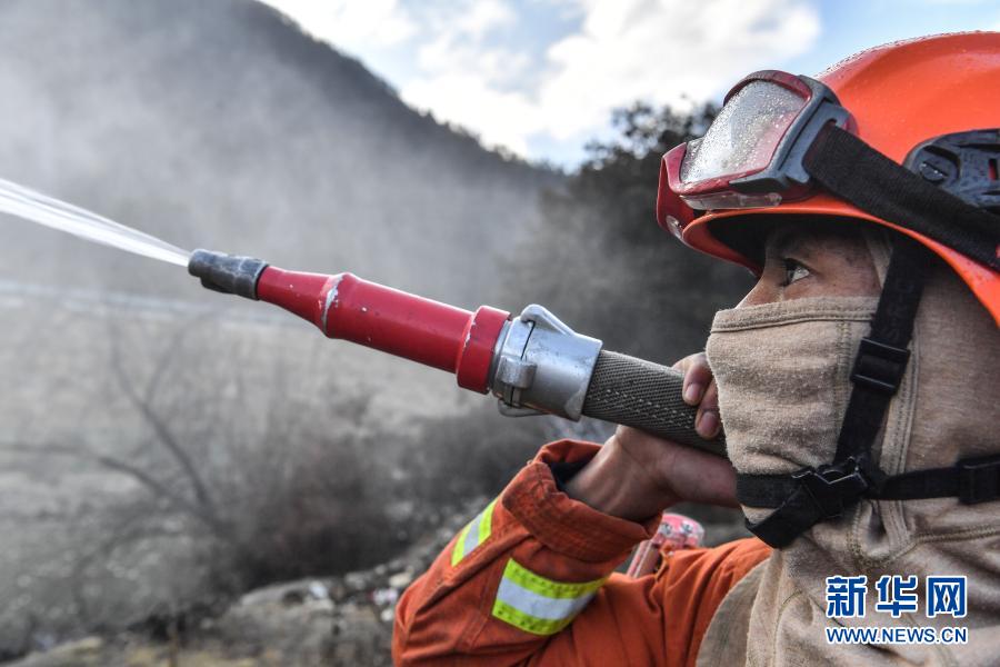 2月26日,西藏林芝市森林消防支队指战员开展消防演练。新华社记者 晋美多吉 摄