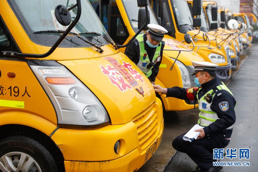 2月28日,平顶山市公安局城乡一体化示范区分局民警对辖区内的校车进行安全检查。
