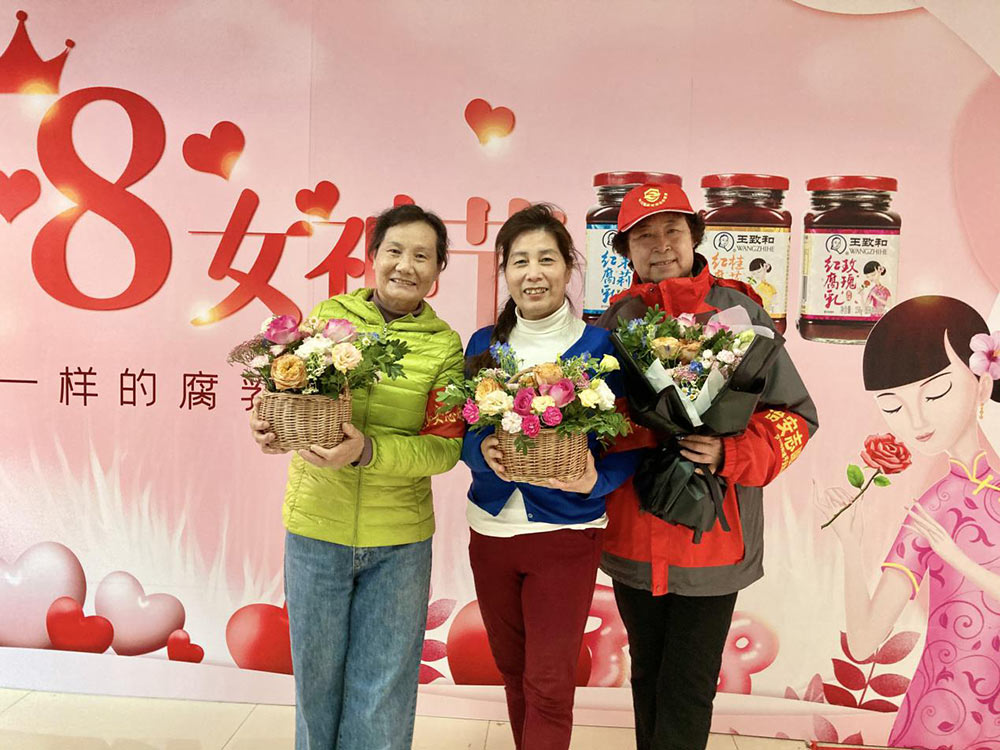 “三八”国际妇女节来临之际,鲜花是很多人首选的送给“女神”的礼物。国家级非遗老字号王致和近日走进社区,为女性朋友带来一场与“花”相关的活动:请来花艺老师教大家学插花,请专业化妆师给大家讲解化妆知识,让每位女性“貌美如花”。王致和厨师还用王致和独一无二的花系列腐乳带领大家一起做出了可口的小点心,一起度过了开心快乐的“女神节”。