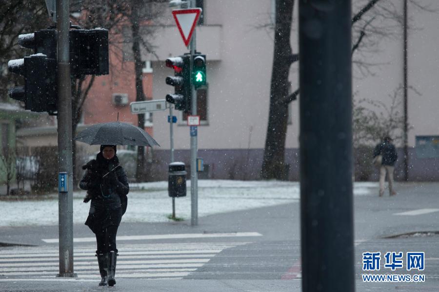 3月14日,行人在斯洛文尼亚首都卢布尔雅那的街头出行。