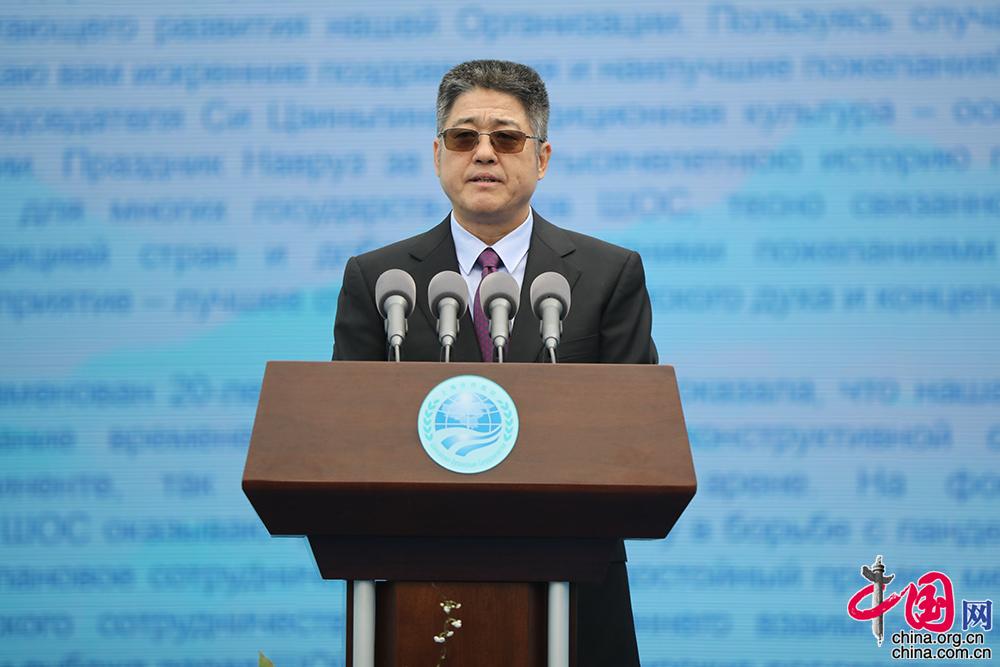 3月19日,上海合作组织在京举行庆祝国际纳乌鲁兹节活动,图为中国外交部副部长乐玉成发言。中国网 李佳摄影