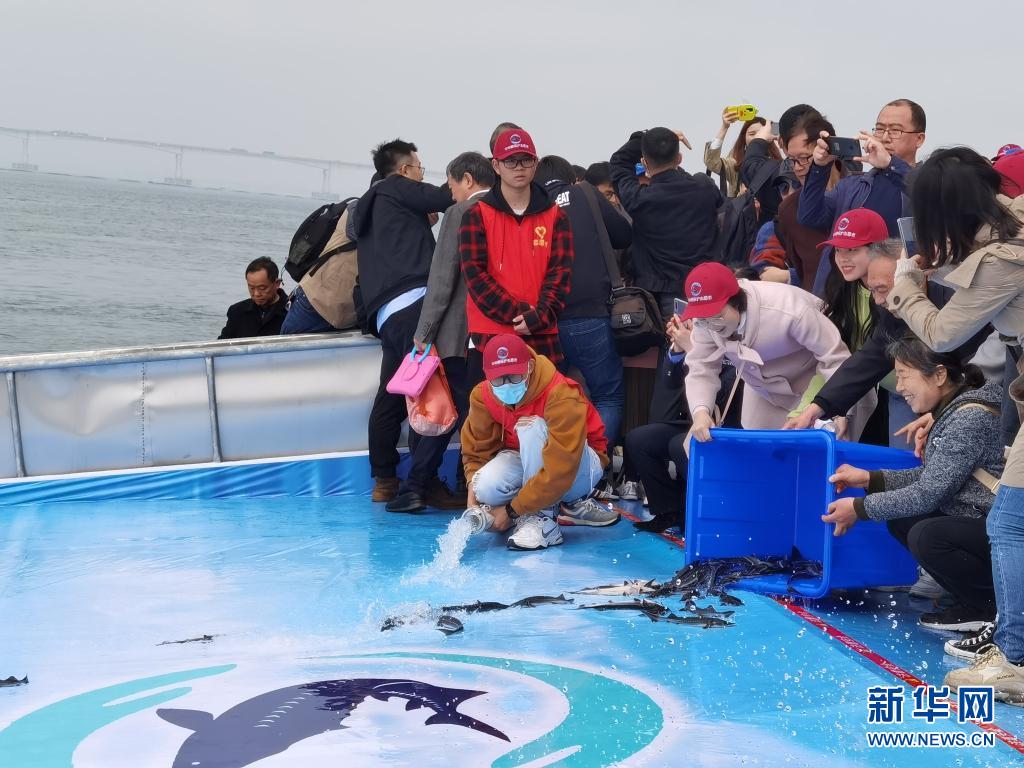 3月28日,环保志愿者在湖北省荆州市沙市汽渡码头参加放流活动。新华社记者 王贤 摄