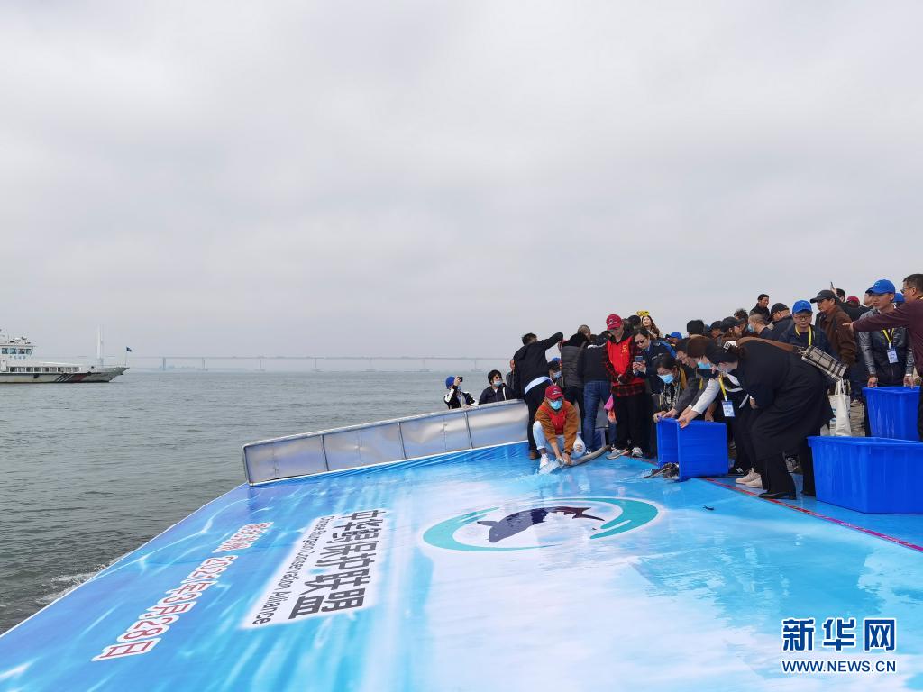 3月28日,环保志愿者在湖北省荆州市沙市汽渡码头参加放流活动。新华社记者 王贤 摄