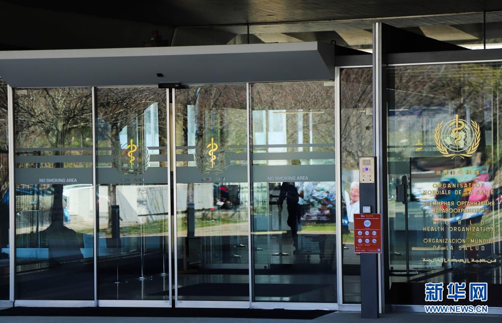 这是3月30日在瑞士日内瓦拍摄的世界卫生组织总部办公大楼的入口。