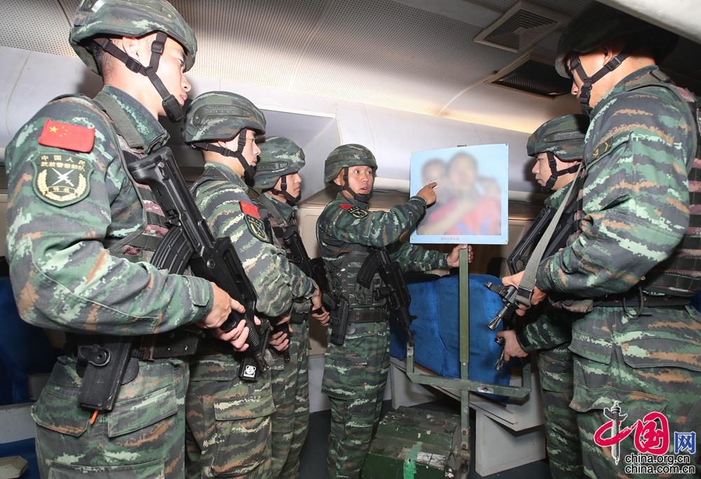 彭星(右三)给特战队员讲解射击原理。(摄影 潘桂添)
