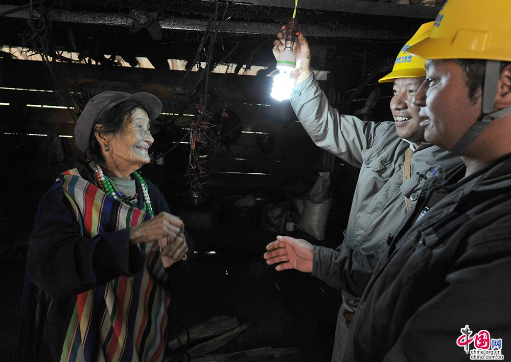 为了解决独龙族同胞的用电问题,2008年,南方电网公司“户户通电”工程队伍挺进独龙江,以一项被誉为国内难度最大、风险最高、单位成本最高的户户通电工程“点亮”独龙江乡。