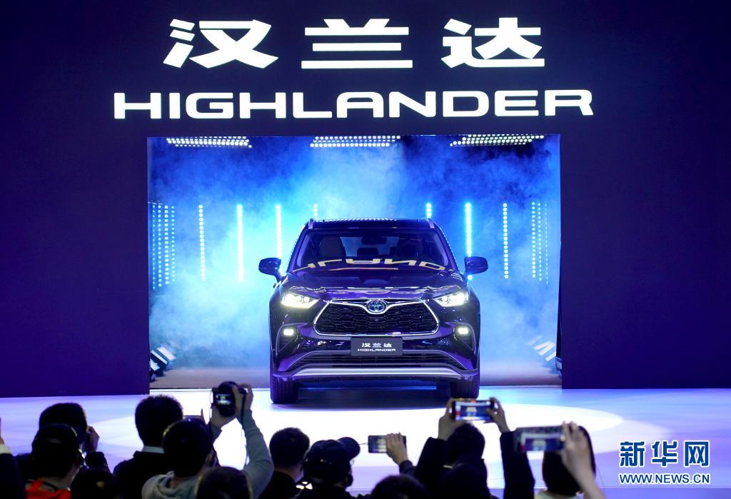 4月19日,媒体记者在发布会上拍摄广汽丰田推出的全新第四代汉兰达SUV混合动力车型。