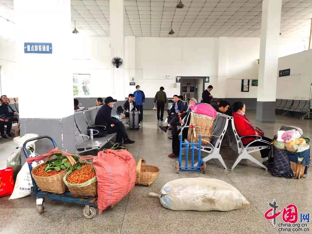 家住宁强县燕子砭镇新厂街村的王大妈,是这趟列车的常客。前几年,为保护和改善当地生态环境,当地实行退耕还林政策,村里青壮年男子大多选择外出务工,留守家中的王大妈等人闲不住,除了侍弄家里的菜地,隔三差五将当季的特色农产品,樱桃、瓢儿等时令水果背上汉中至阳平关8361/2次或宝鸡至广元6063/4次列车上,在车上和到站售卖。