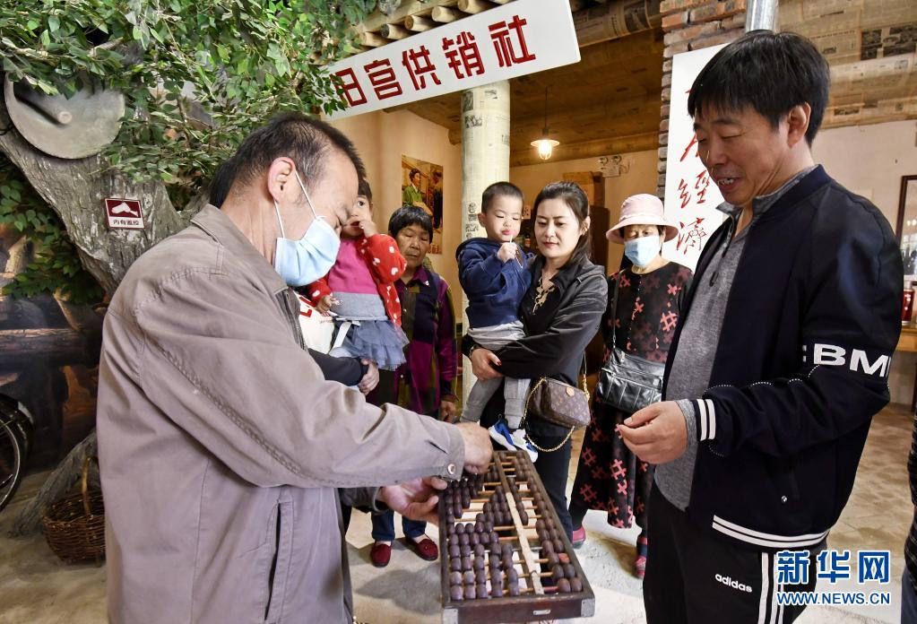 4月23日,北京市大兴区旧宫镇的居民在镇情村史馆内的互动体验区体验。