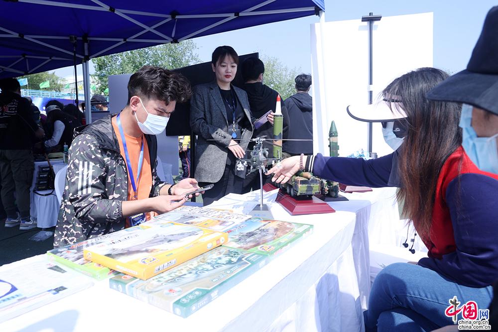 在场青少年对导弹车模型产生浓厚兴趣(封晓东 摄)