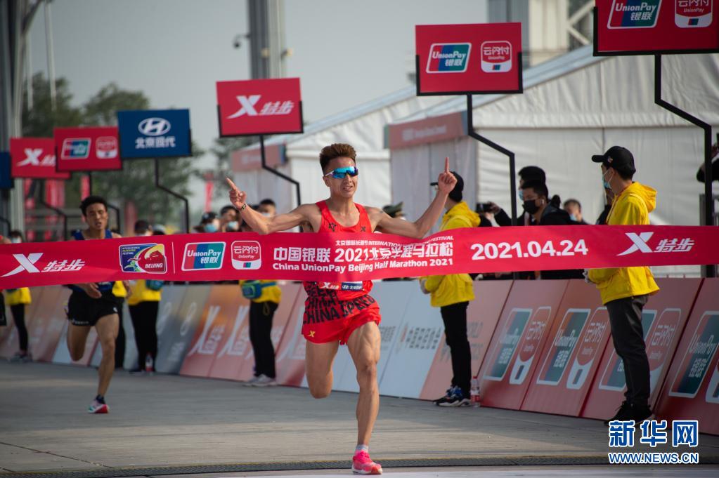 当日,在2021年北京半程马拉松赛中,彭建华以1小时4分53秒的成绩获得男子组第一名。