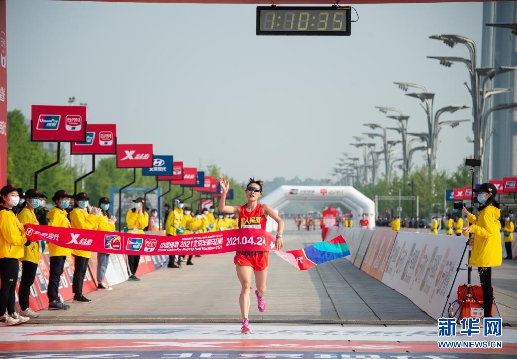 当日,在2021年北京半程马拉松赛中,金铭铭以1时10分35秒的成绩获得女子组第一名。