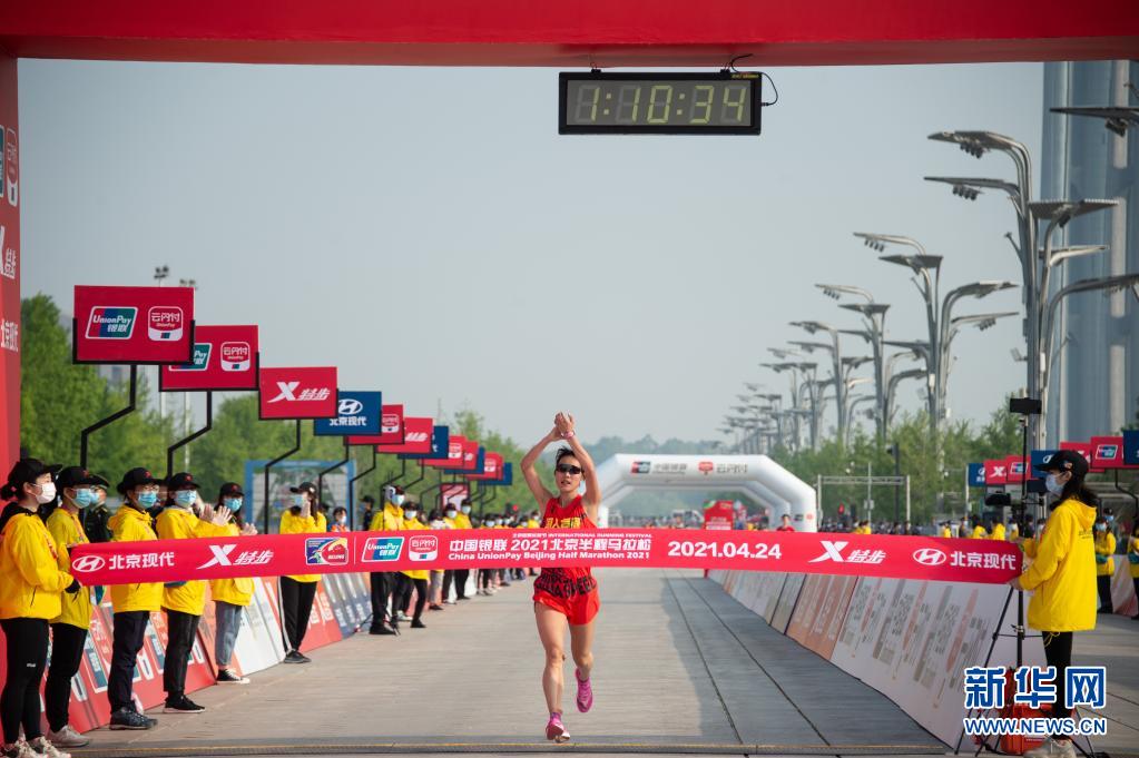 当日,在2021年北京半程马拉松赛中,金铭铭以1时10分35秒的成绩获得女子组第一名。