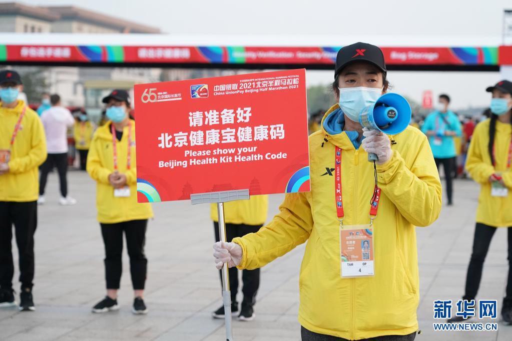 当日,2021年北京半程马拉松在天安门广场开跑。