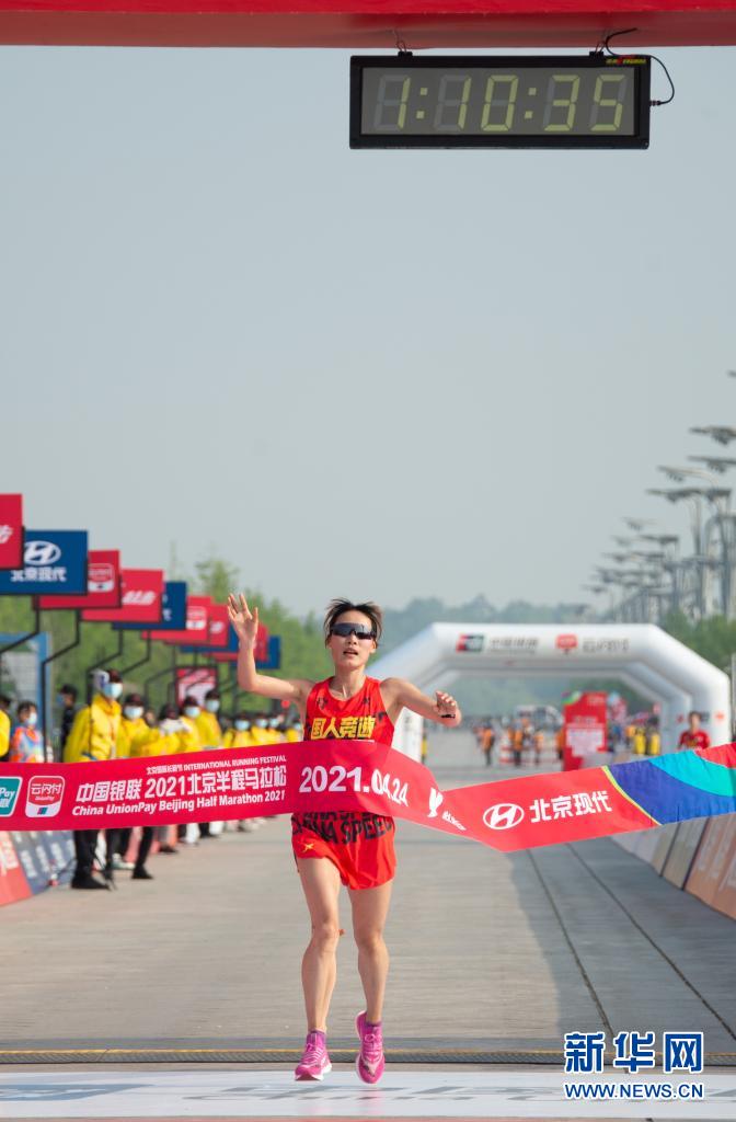 当日,在2021年北京半程马拉松赛中,金铭铭以1时10分35秒的成绩获得女子组第一名。