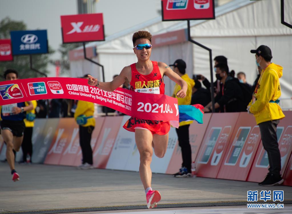 当日,在2021年北京半程马拉松赛中,彭建华以1小时4分53秒的成绩获得男子组第一名。