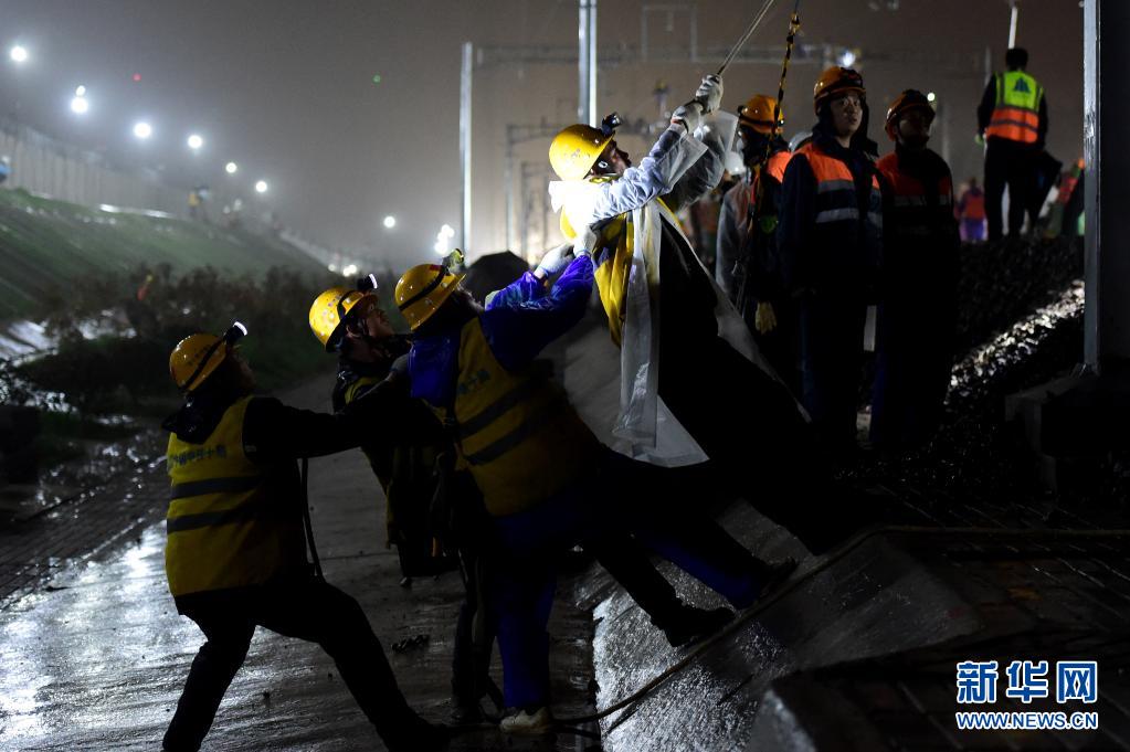 4月26日晚,由中铁十局、中铁四局负责施工的引江济淮沪蓉高铁改建工程双线拨接作业全面开工。千余名铁路工人利用夜间高铁停运七个小时的“天窗期”,将沪蓉高铁改道至新线运营,为引江济淮航道建设提供条件。据介绍,这是国内首例高铁双线拨接工程,也是引江济淮工程全线重难点和控制性工程。引江济淮工程沟通长江与淮河,是国家重大战略性水利建设项目,也是集供水、航运、生态为一体的水资源综合利用工程。