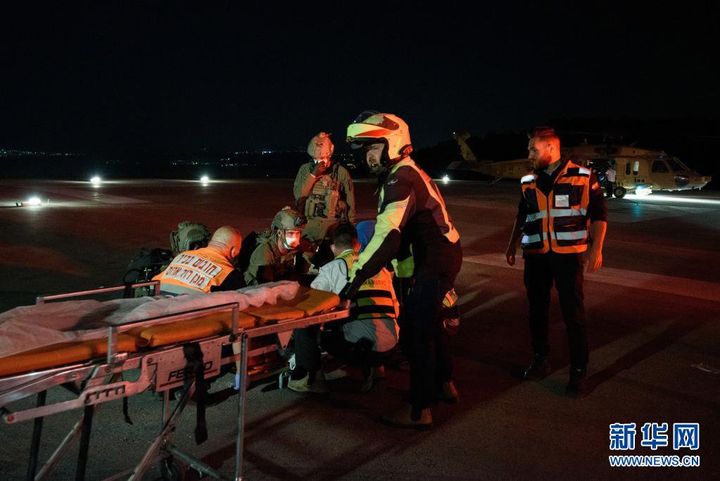 4月30日,以色列救援人员将踩踏事故伤者转移至位于北部城市采法特的齐夫医学中心。