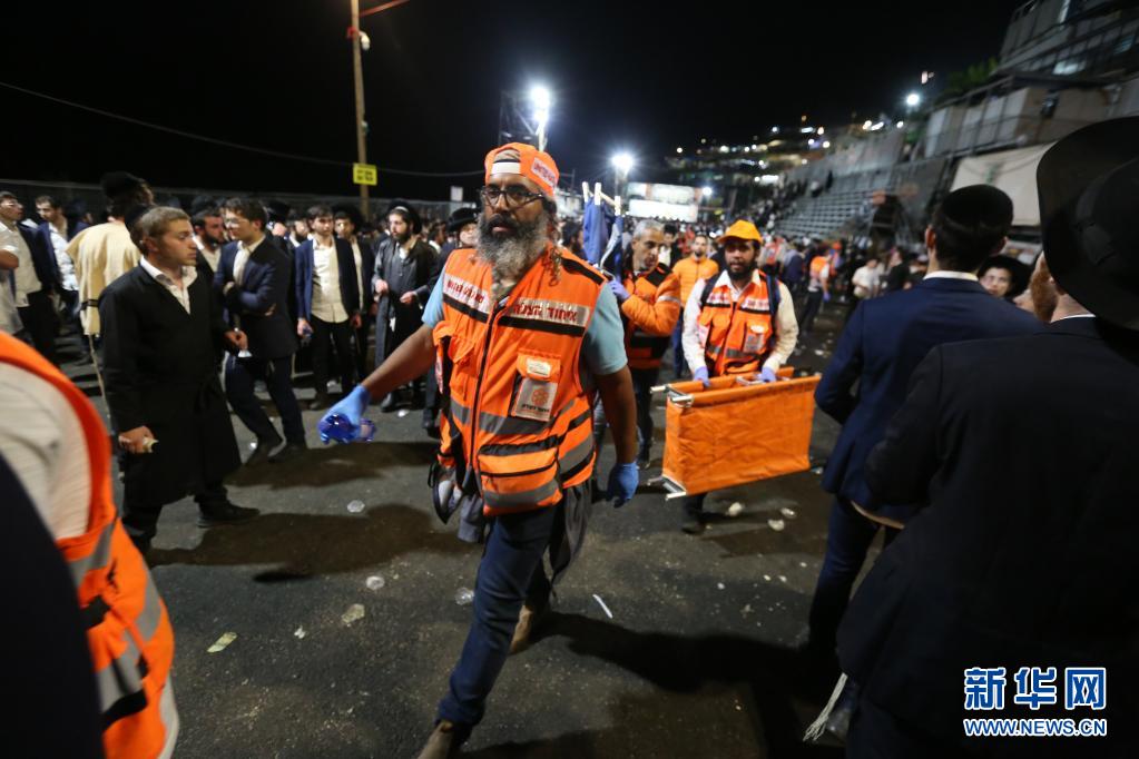 据以色列媒体30日报道,当日凌晨该国北部发生一起严重踩踏事故,已致至少44人死亡,103人受伤,部分伤者情况危急。事发时大量犹太教徒聚集在该国北部的梅龙山庆祝犹太教节日,约10万人参加的音乐会看台倒塌导致惨剧发生。新华社/基尼图片社
