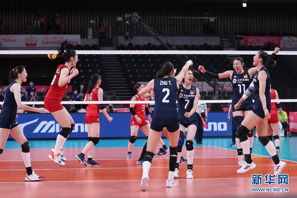 当日,在日本东京举行的东京奥运会排球测试赛第一日女排比赛中,中国队以3比0战胜日本队。