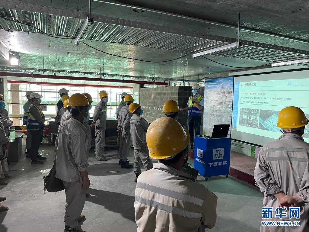 5月1日,中建科工员工在巴布亚新几内亚首都莫尔兹比港进行土建工程安全培训(手机拍摄)。
