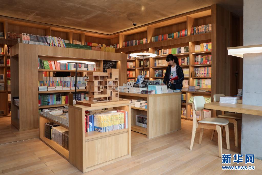 5月8日,在福建省晋江市东石镇“母亲的房子”图书馆,读者在挑选书籍。