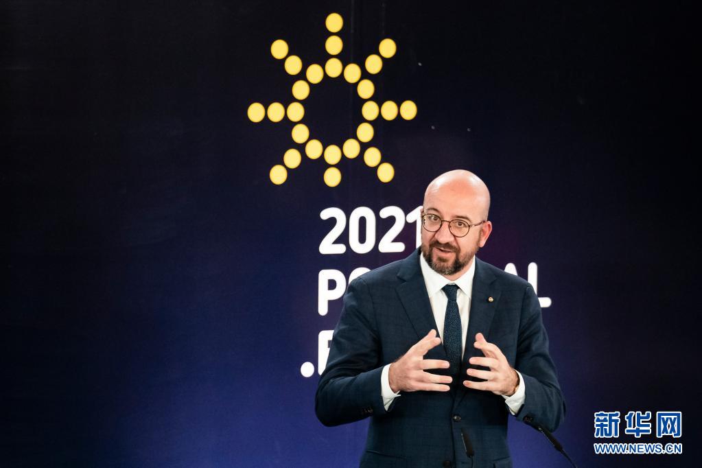 5月8日,欧洲理事会主席米歇尔在葡萄牙波尔图出席欧盟社会峰会期间的记者会。
