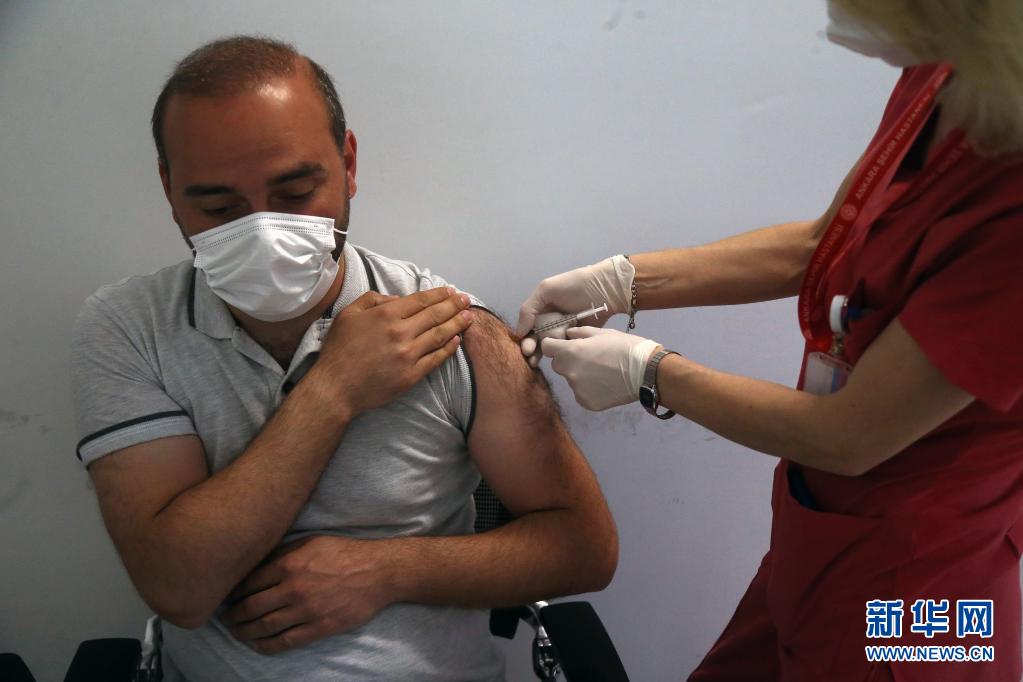 5月8日,在土耳其安卡拉,一名男子接种新冠疫苗。