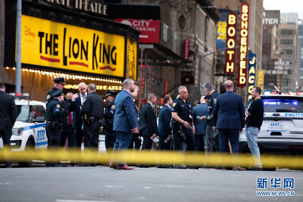 5月8日,警察在美国纽约时报广场的枪击发生地点附近工作。