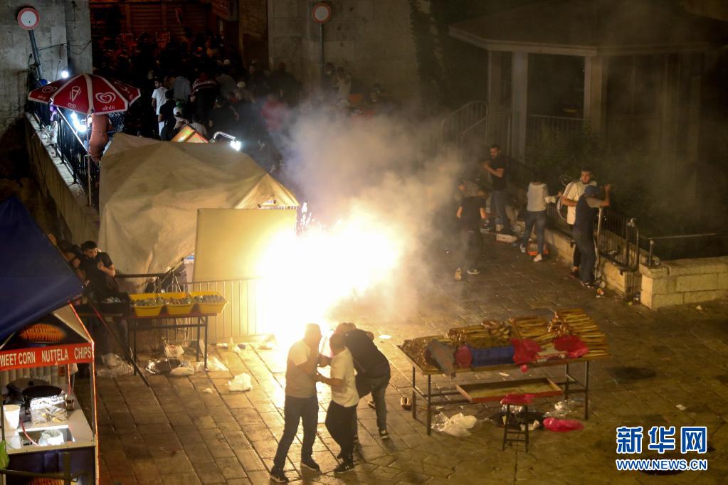 巴勒斯坦民众与以色列警察8日晚在耶路撒冷老城发生冲突。
