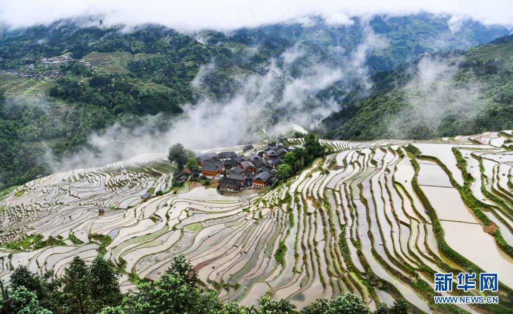 雨后的加榜梯田及苗寨风光(5月4日摄)。