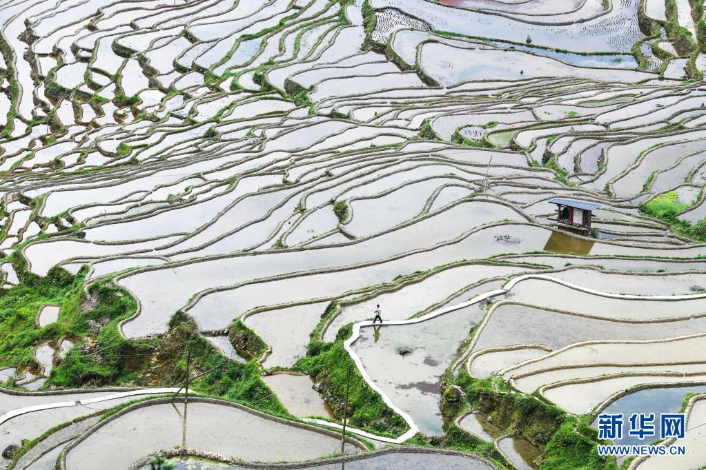 莫晓树在采集加榜梯田影像途中(5月3日摄)。