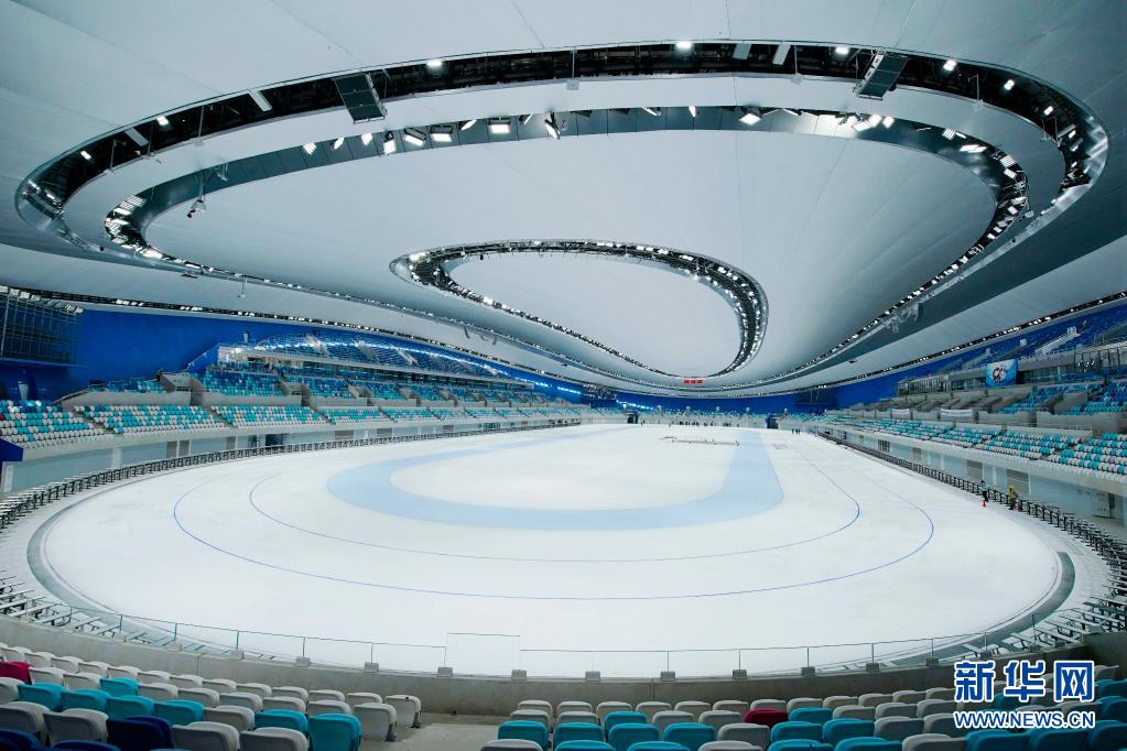 近日,北京冬奥会标志性场馆国家速滑馆“冰丝带”开展首次全冰面制冰,规模约1.2万平方米的场馆全冰面成功亮相。