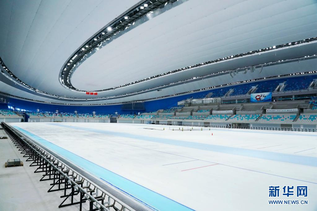近日,北京冬奥会标志性场馆国家速滑馆“冰丝带”开展首次全冰面制冰,规模约1.2万平方米的场馆全冰面成功亮相。