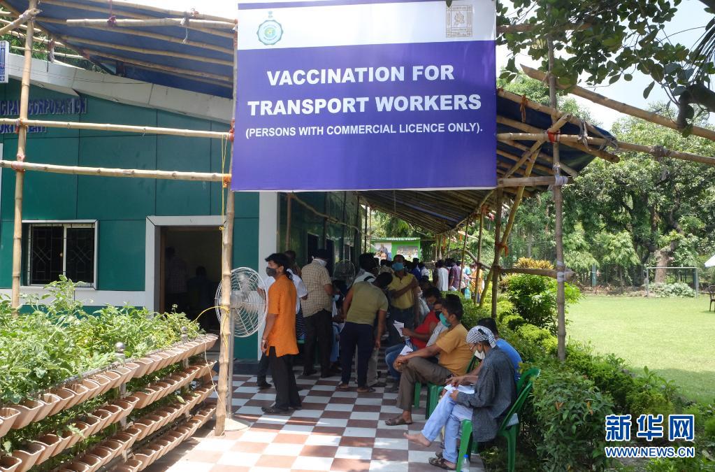 5月11日,在印度加尔各答,运输行业人员排队等候接种新冠疫苗。