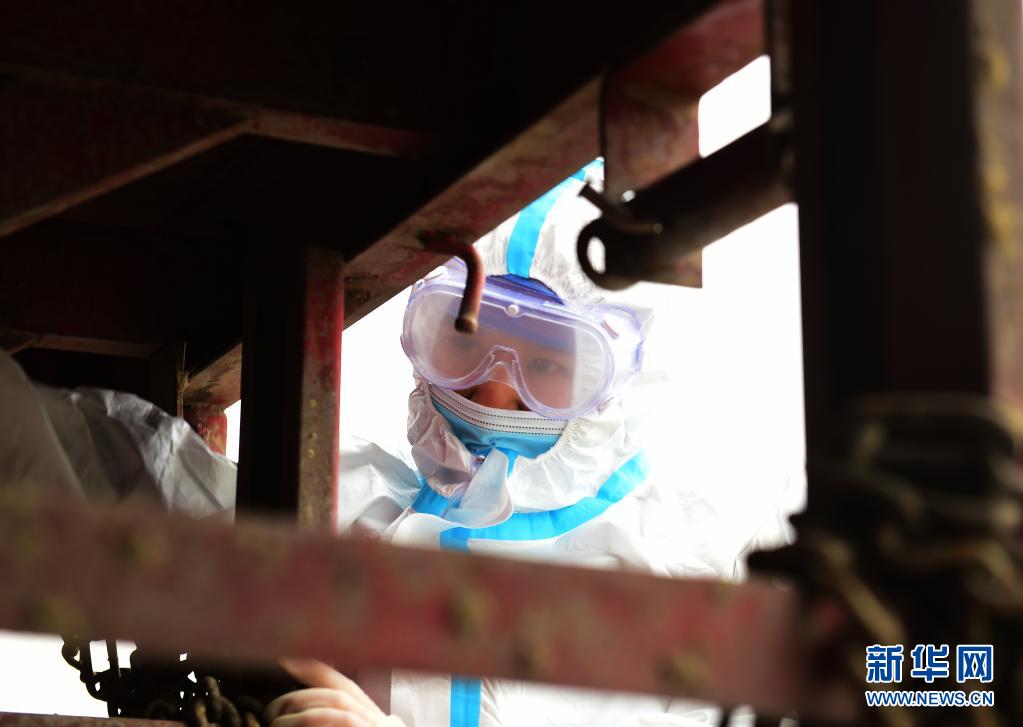 卡拉苏出入境边防检查站执勤二队女民警张静检查货车底部(5月5日摄)。