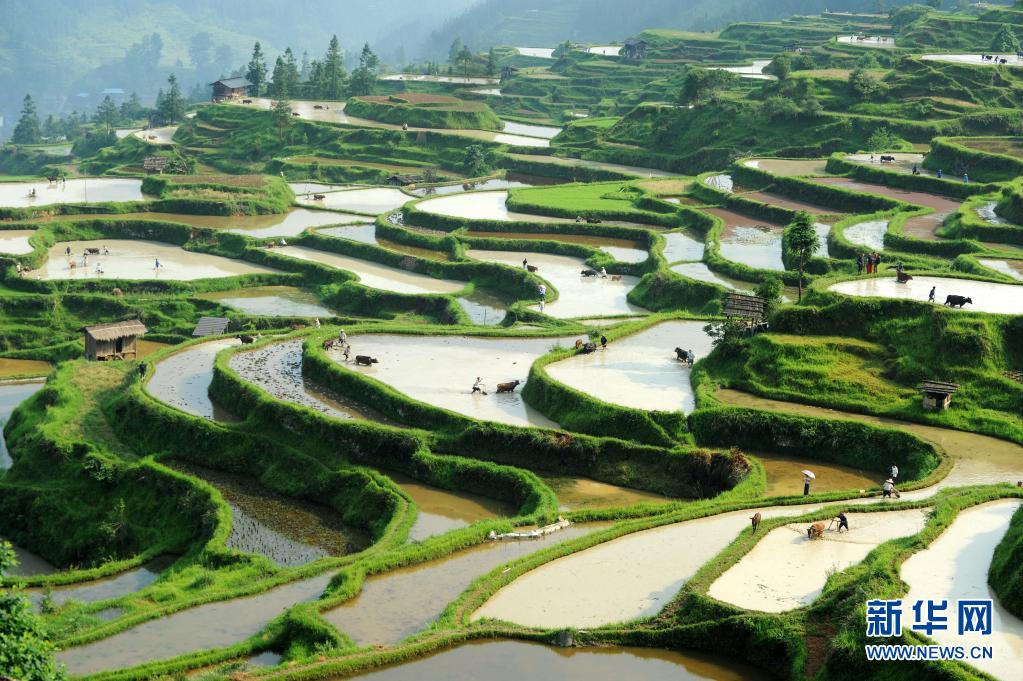 贵州省黎平县尚重镇洋洞村的村民在参加传统农耕展示活动(2018年5月20日摄)。新华社记者 杨文斌 摄